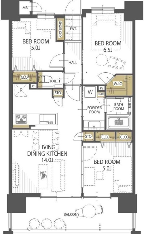 | 間取り(内訳) | 3LDK(洋室6.5畳、洋室5.0畳、洋室5.0畳、リビング14畳) | 建物面積 | |
